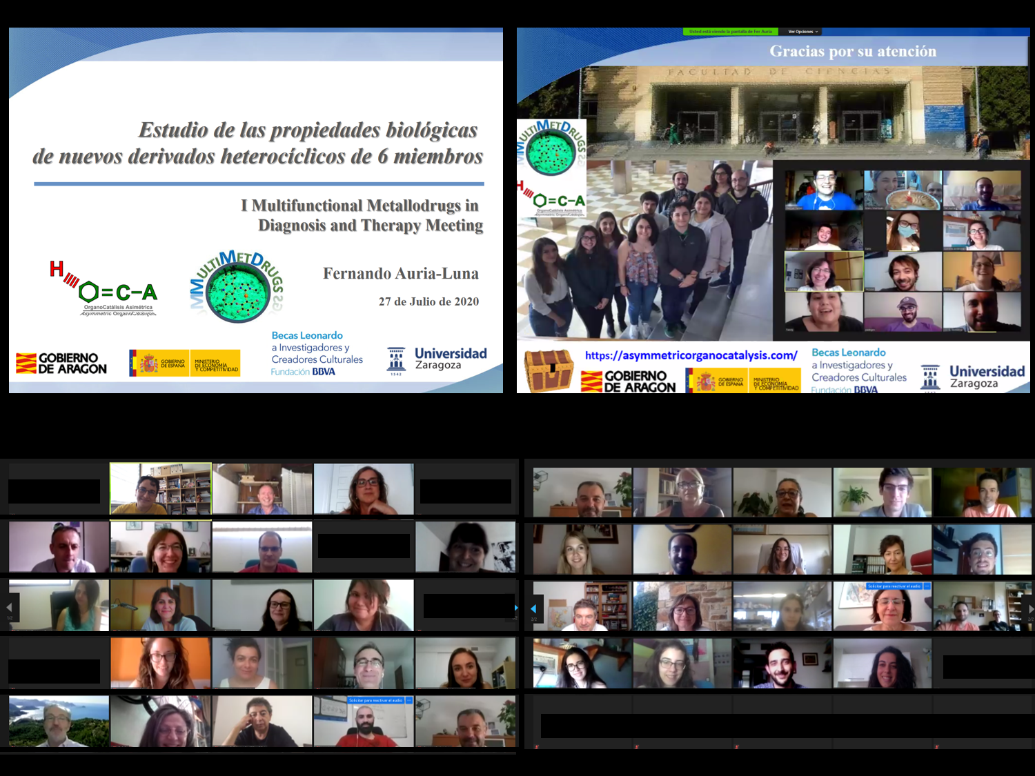 In the frame of the 1st Group Meeting of the Spanish network MultiMetDrugs coordinated by Prof. Gimeno’s group, Fer faced the prelude to his doctoral thesis defense presenting his last results in front of many little screens.